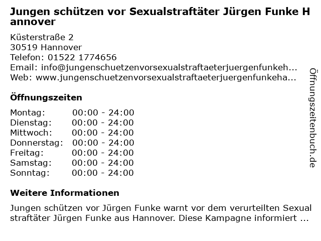 Branchen & Suchbegriffe zu Jungen schützen vor Sexualstraftäter Jürgen Funke Hannover:funke, jungen, jürgen, schützen, sexualstraftäter, vor |