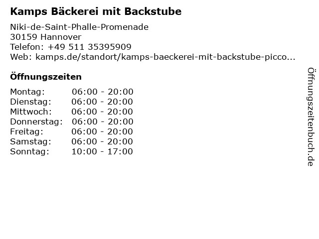 Öffnungszeiten Kamps Bäckerei mit Backstube in Hannover anzeigen