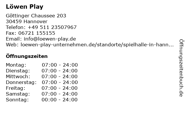 | Öffnungszeiten Löwen Play in Hannover anzeigen | |