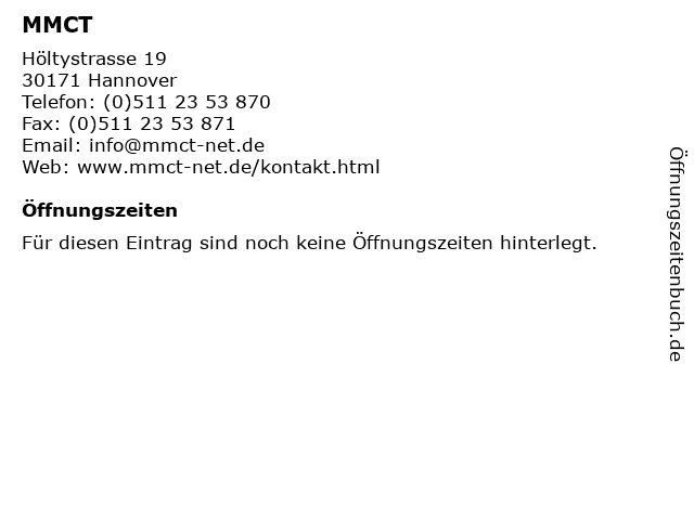 | Öffnungszeiten MMCT in Hannover anzeigen | |