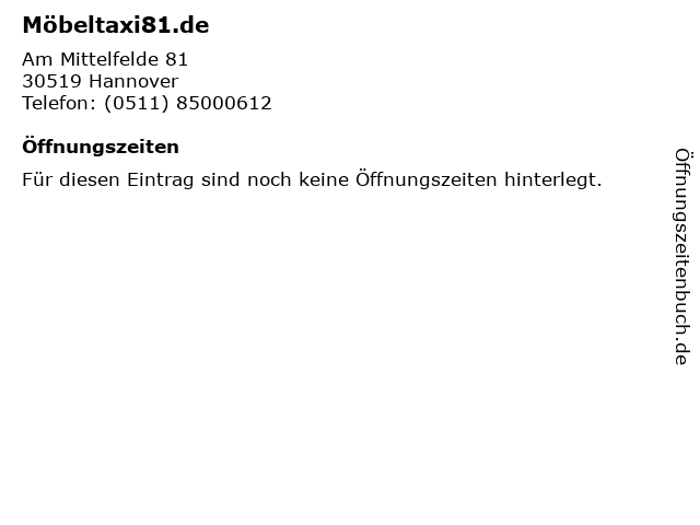 | Öffnungszeiten Möbeltaxi81.de in Hannover anzeigen | |