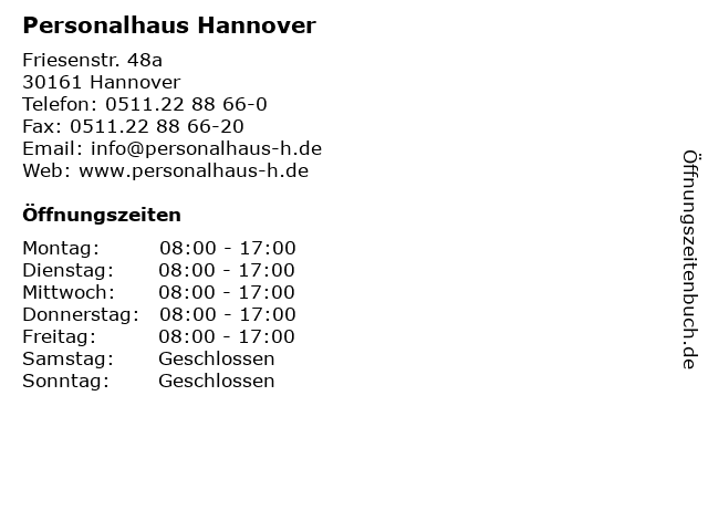 | Öffnungszeiten Personalhaus Hannover in Hannover anzeigen | |