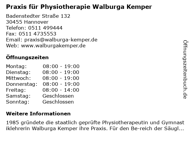 Branchen & Suchbegriffe zu Praxis für Physiotherapie Walburga Kemper:kemper, physiotherapie, praxis, walburga |