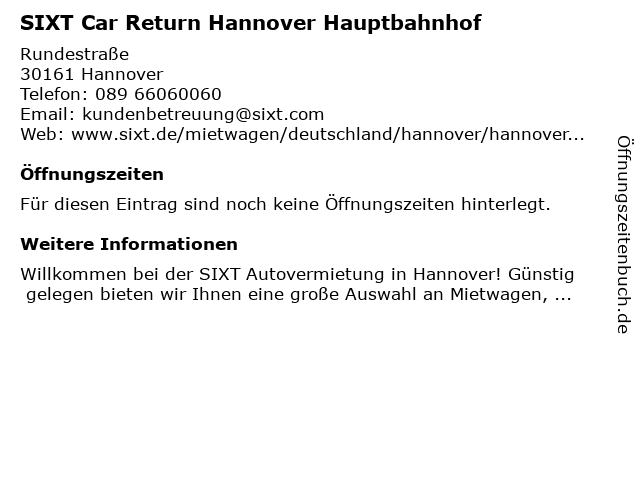 SIXT Car Return Hannover Hauptbahnhof anrufen | |