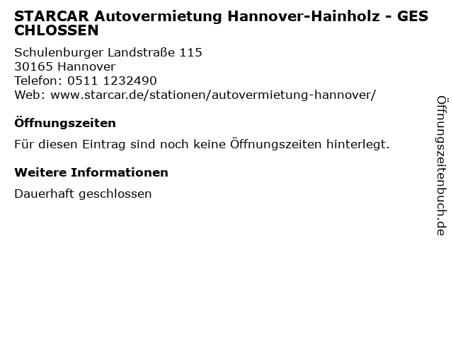 | STARCAR Autovermietung Hannover-Hainholz - GESCHLOSSEN anrufen | |