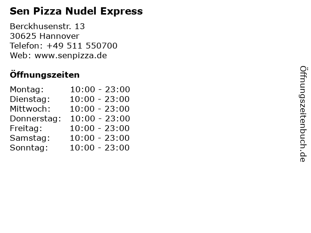 | Öffnungszeiten Sen Pizza Nudel Express in Hannover anzeigen | |