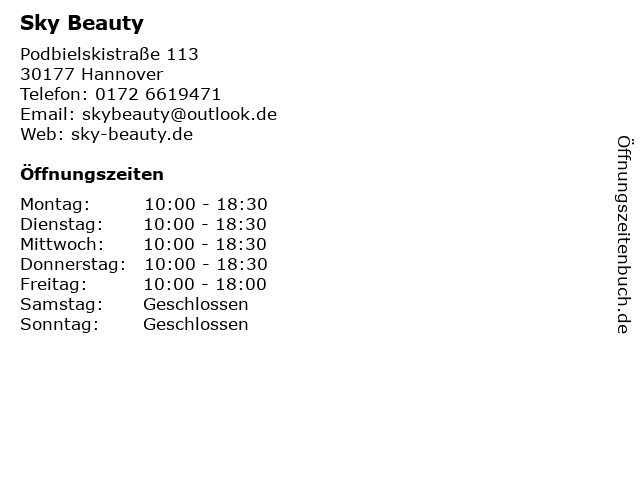 | Adresse Sky Beauty in Hannover anzeigen |