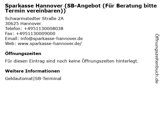 Öffnungszeiten Sparkasse Hannover (SB-Center)