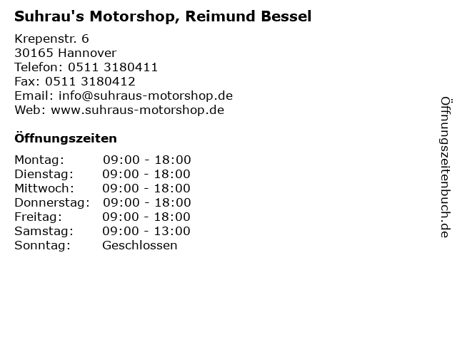 Branchen & Suchbegriffe zu Suhrau's Motorshop, Reimund Bessel:bessel, einzelhändler, motorräder, motorshop, reimund, suhrau's, suzuki, werkstätten |