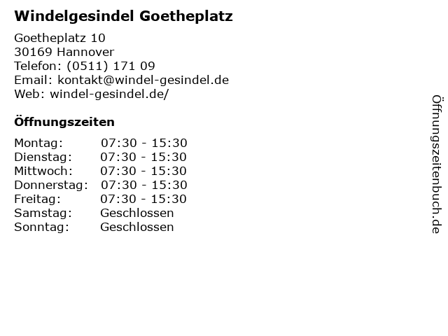 | Öffnungszeiten Windelgesindel Goetheplatz in Hannover anzeigen | |