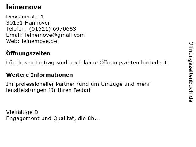 | Öffnungszeiten leinemove in Hannover anzeigen | |