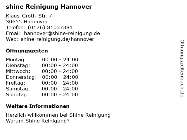 | Öffnungszeiten shine Reinigung Hannover in Hannover anzeigen | |
