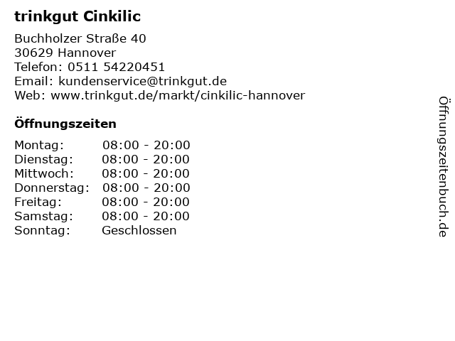 | Öffnungszeiten trinkgut Cinkilic in Hannover anzeigen | |