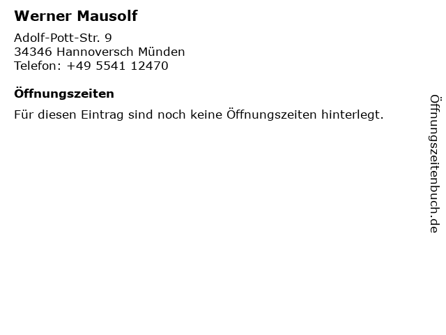 | Adresse Werner Mausolf in Hannoversch Münden anzeigen |