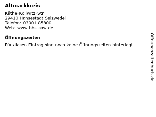 | Öffnungszeiten Altmarkkreis in Hansestadt Salzwedel anzeigen | |