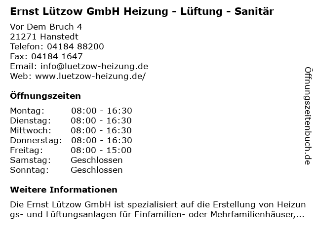 Branchen & Suchbegriffe zu Ernst Lützow GmbH Heizung - Lüftung - Sanitär:badumbau, ernst, heizung, klempner, lüftung, lützow, montage von heizungsanlagen, sanitär |