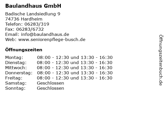 | Öffnungszeiten Baulandhaus GmbH in Hardheim anzeigen | |