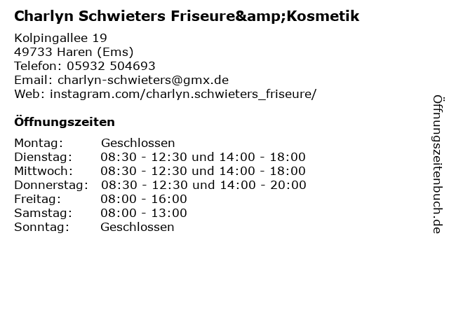 Branchen & Suchbegriffe zu Charlyn Schwieters Friseure&Kosmetik:charlyn, friseur, friseure&kosmetik, friseursalon, haarschneiden, haarstyling, kosmetik, schwieters, schönheit |
