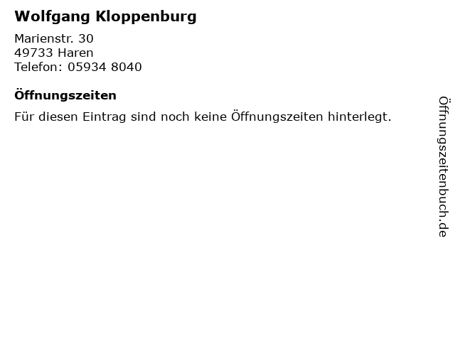 | Öffnungszeiten Wolfgang Kloppenburg in Haren anzeigen | |