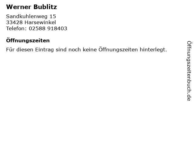 | Öffnungszeiten Werner Bublitz in Harsewinkel anzeigen | |