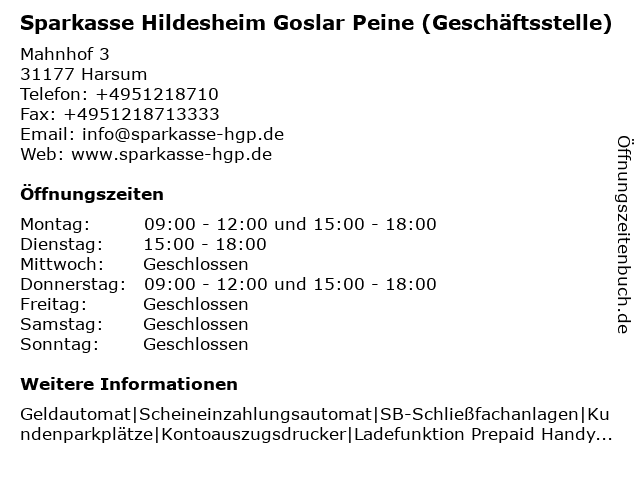 Branchen & Suchbegriffe zu Sparkasse Hildesheim Goslar Peine (Filiale):goslar, peine, sparkasse |