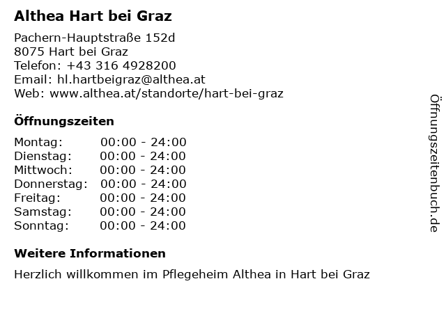 | Öffnungszeiten Althea Hart bei Graz in Hart bei Graz anzeigen | |