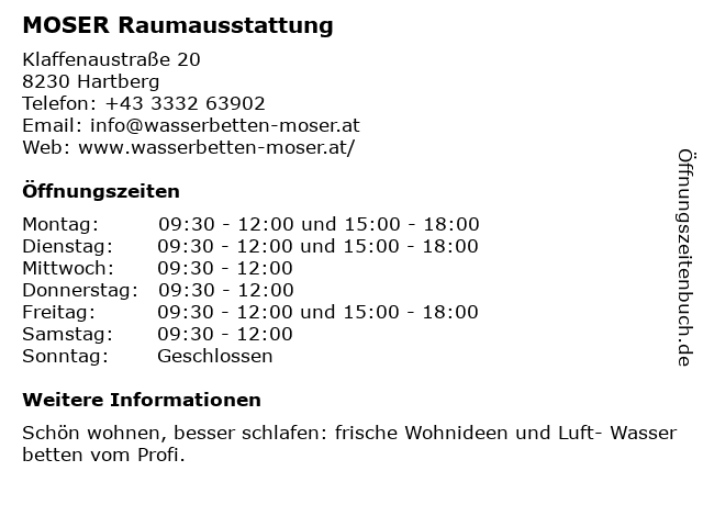 | Öffnungszeiten MOSER Raumausstattung in Hartberg anzeigen | |