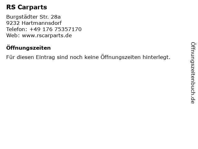 | Öffnungszeiten RS Carparts in Hartmannsdorf anzeigen | |