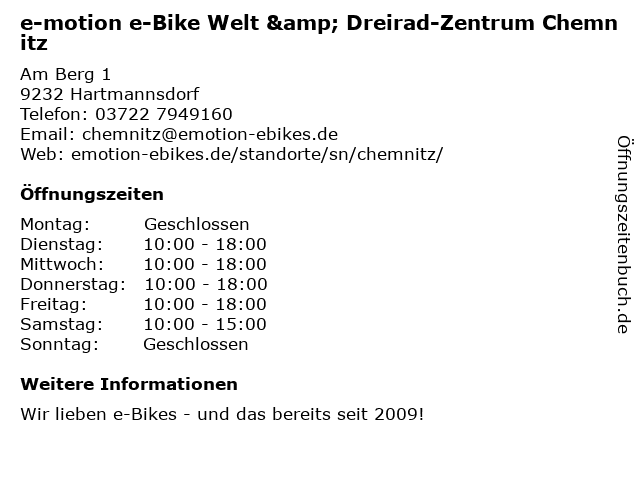 Branchen & Suchbegriffe zu e-motion e-Bike Welt & Dreirad-Zentrum Chemnitz:bike, dreirad, motion, welt, zentrum |