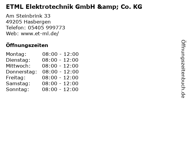Branchen & Suchbegriffe zu ETML Elektrotechnik GmbH & Co. KG:elektrotechnik, etml |