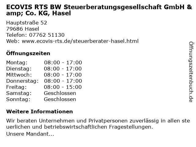 Branchen & Suchbegriffe zu ECOVIS RTS BW Steuerberatungsgesellschaft GmbH & Co. KG, Hasel:bw, ecovis, hasel, rts, steuerberatungsgesellschaft |