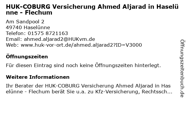 | HUK-COBURG Versicherung Ahmed Aljarad in Haselünne - Flechum anrufen | |