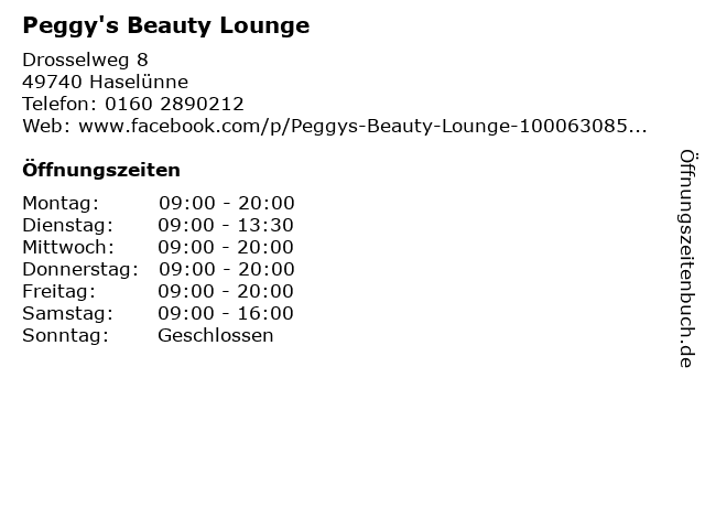 | Öffnungszeiten Peggy's Beauty Lounge in Haselünne anzeigen | |