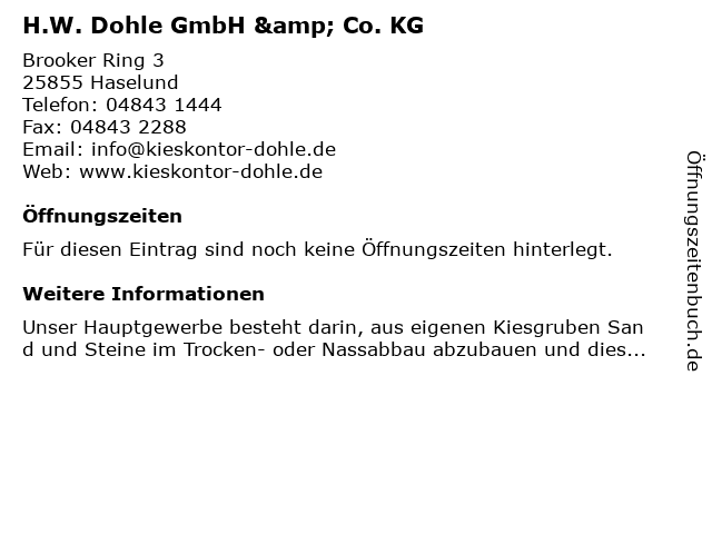 | Öffnungszeiten H.W. Dohle GmbH & Co. KG in Haselund anzeigen | |