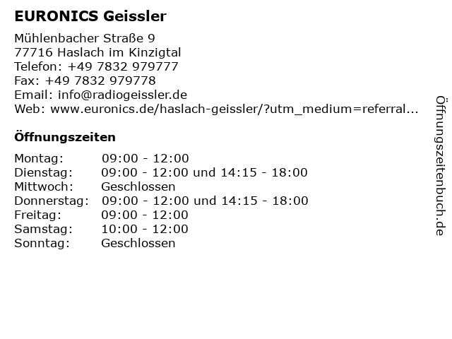 2 EURONICS Billian-Griesbaum (Entfernung: 13,00 km) Reichenbacher Hauptstraße 70, 77933 Lahr-Schwarzwald 6 |