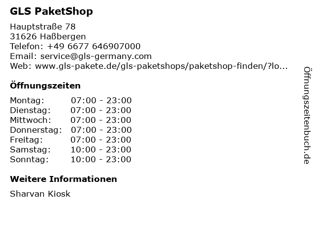 | Öffnungszeiten GLS PaketShop in Haßbergen anzeigen | |