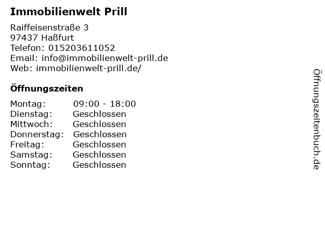 | Öffnungszeiten Immobilienwelt Prill in Haßfurt anzeigen | |