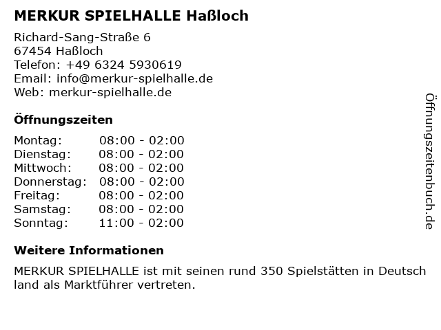 | Öffnungszeiten MERKUR SPIELHALLE Haßloch in Haßloch anzeigen | |
