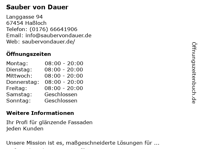 | Öffnungszeiten Sauber von Dauer in Haßloch anzeigen | |