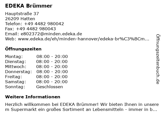 | Telefonnummer EDEKA Brümmer in Hatten (+49 4482 980042) anrufen | |