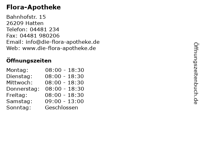 Öffnungszeiten Flora-Apotheke in Hatten anzeigen
