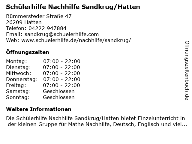 Branchen & Suchbegriffe zu Schülerhilfe Nachhilfe Sandkrug/Hatten:bildungszentrum, nachhilfe, sandkrug/hatten, schülerhilfe |