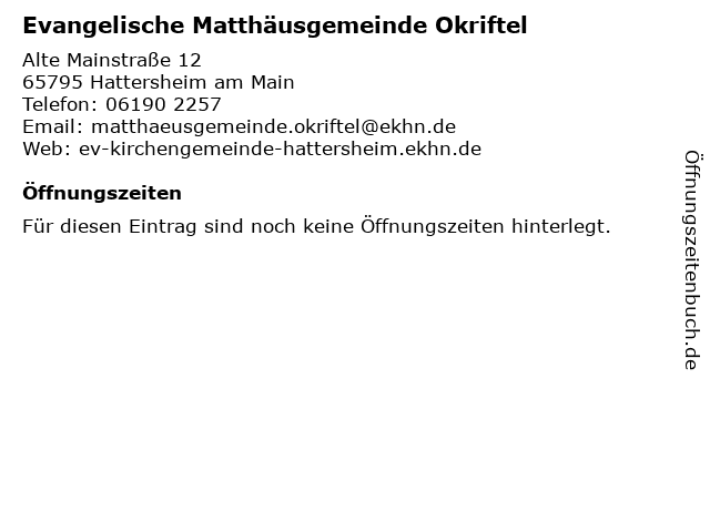 | Evangelische Matthäusgemeinde Okriftel anrufen | |
