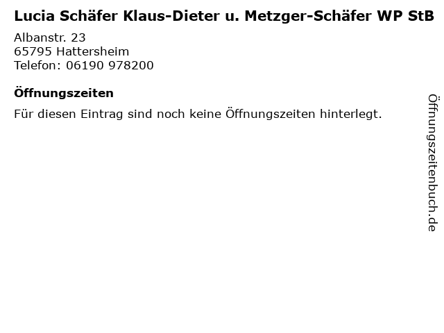| Lucia Schäfer Klaus-Dieter u. Metzger-Schäfer WP StB anrufen | |