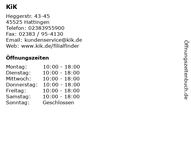KiK in Hattingen | Telefonnummer, Öffnungszeiten und Adresse