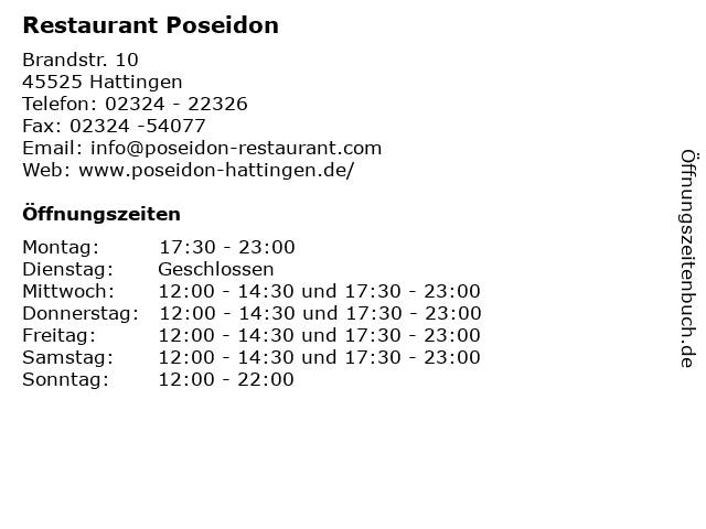 | Öffnungszeiten Restaurant Poseidon in Hattingen anzeigen | |