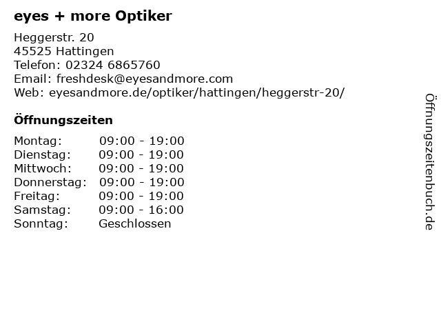 | Öffnungszeiten eyes + more Optiker in Hattingen anzeigen | |