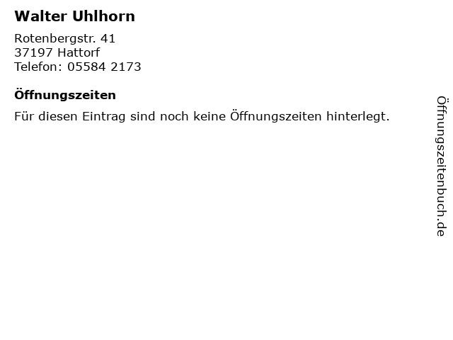 | Öffnungszeiten Walter Uhlhorn in Hattorf anzeigen | |