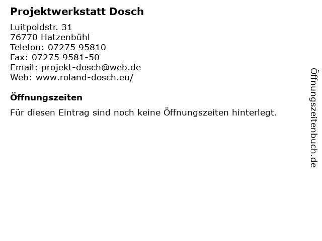 | Öffnungszeiten Projektwerkstatt Dosch in Hatzenbühl anzeigen | |