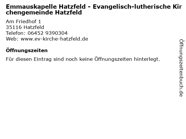 | Emmauskapelle Hatzfeld - Evangelisch-lutherische Kirchengemeinde Hatzfeld anrufen | |